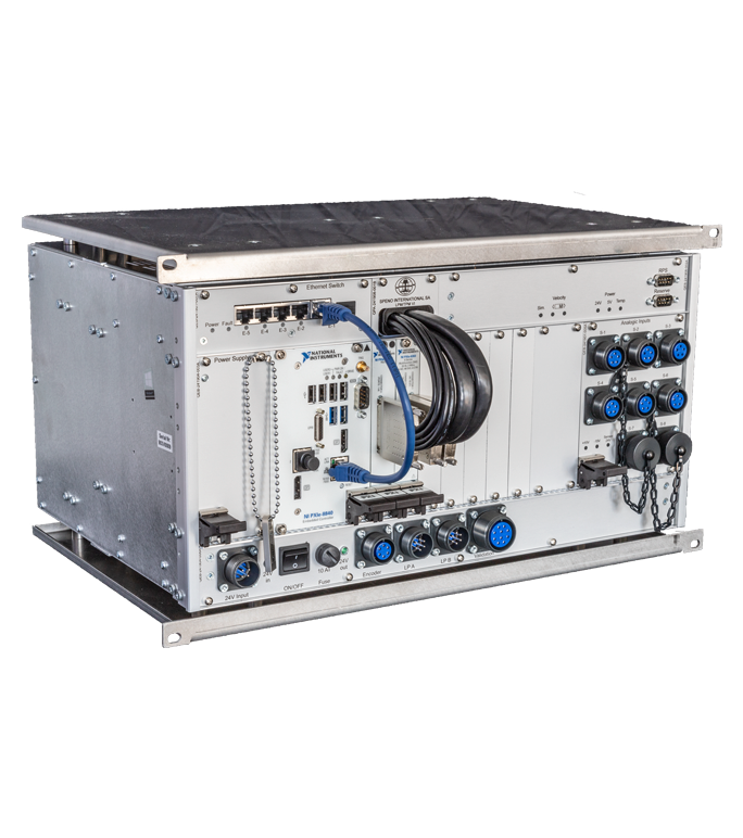 Lecture du filmLa réalisation d’un système de mesure employant des technologies sans contact s’est accompagnée de la rénovation de la plateforme d’acquisition et de traitement des signaux. Celle-ci repose sur une instrumentation modulaire au format PXI. Elle est installée dans la cabine du conducteur du train qui pilote les opérations de meulage en fonction des résultats relevés par le système de mesure. Sur l’écran de supervision, le conducteur visualise les profils transversaux de chacun des deux rails. Ce profil réel est superposé aux gabarits avec les points de référence définis par l’exploitant ferroviaire. Sous chacun de ces points, un barre-graphe, indique si la côte relevée se situe dans les tolérances requises (un point hors tolérances est indiqué de couleur rouge). Les mesures liées aux irrégularités du rail sur sa partie supérieure (profil longitudinal) sont présentées juste en dessous sur le même écran. Elles sont décomposées en trois catégories selon leur longueur d’onde (courte, moyenne, longue). Pour chacune d’elles, des tolérances sont déterminées. Il faut procéder au meulage lorsque celles établies pour les profils longitudinaux et transversaux sont dépassées. Jusqu’à présent, le système d’acquisition, de traitement et de supervision était géré par trois contrôleurs associés à des cartes d’acquisition au format PXI. Un contrôleur PXI était chargé de l’interface homme-machine, un autre du traitement des mesures relatives au profil transversal du rail et un dernier pour le traitement des données liées au profil longitudinal. Le premier exploitait une application réalisée sous l’environnement de programmation graphique Labview de National Instruments et les deux autres embarquaient une application réalisée sous Labview Real Time, afin d’assurer la mise à disposition des informations en temps réel. L’opérateur visualisait ainsi les profils en temps réel juste après le passage des meules. Si Speno a opté pour des contrôleurs et des instruments PXI standard, il a toutefois développé un châssis répondant aux contraintes ferroviaires. « Il est équipé d’une alimentation extractible en face avant et de connecteurs industriels de type militaire et il est posé sur silentblocs », décrit Vittorio Carchia qui explique par ailleurs que l’option du PXI a été retenue pour sa pérennité : « c’est ce que l’on recherchait et ce qui a dicté notre choix. Nous ne voulions pas redévelopper le logiciel en fonction de l’évolution du matériel. Le développement logiciel et l’intégration matérielle de cette solution ont été confiés à qmt.