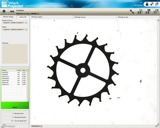 Le WatchProjector permet le contrôle automatique de pièces horlogères par caméras (dimensions, géométries, assemblages, aspects, …). La technologie de mesure optique est basée sur la plateforme performante QMT Vision Inspector. L’ergonomie de l’équipement est spécifiquement adaptée à l’industrie horlogère tout en garantissant une rigidité élevée pour atteindre le haut niveau de précision de mesure recherché.