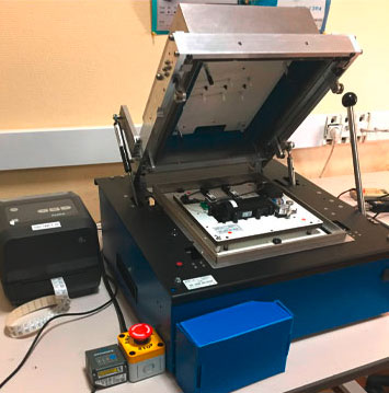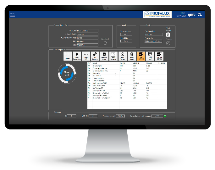 - Banc de test pour le contrôle en fabrication GO/NO GO. Le produit est accepté si les résultats sont conformes aux spécificités