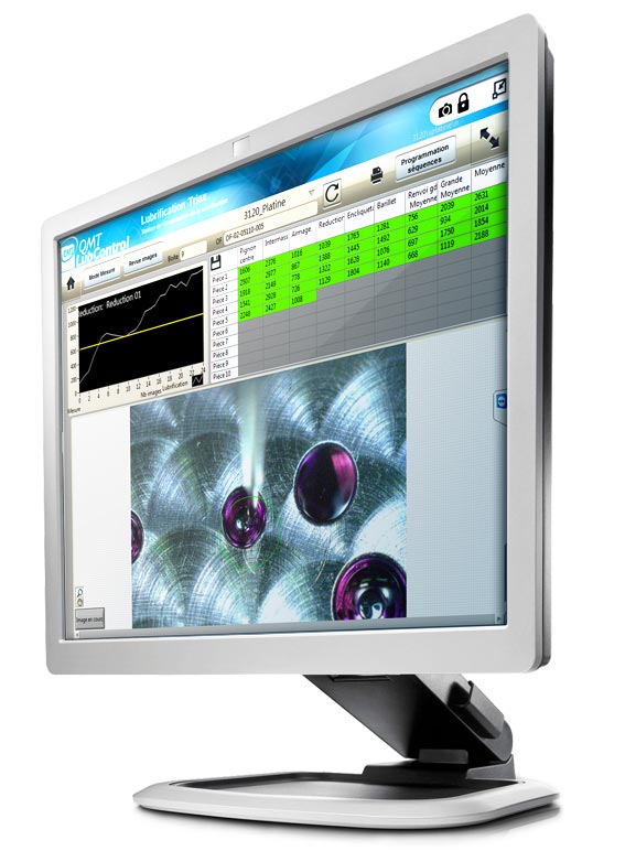 QMTLubControl est une station de vision permettant la visualisation à haute résolution et le contrôle du processus de lubrification d’un équipement SVM. Sont proposés en options l’enregistrement du film de lubrification pour améliorer le pilotage du processus ainsi que le contrôle automatique par traitement d’images du bon déroulement du processus. Ces options permettent une amélioration du contrôle afin de garantir la bonne lubrification des mouvements.